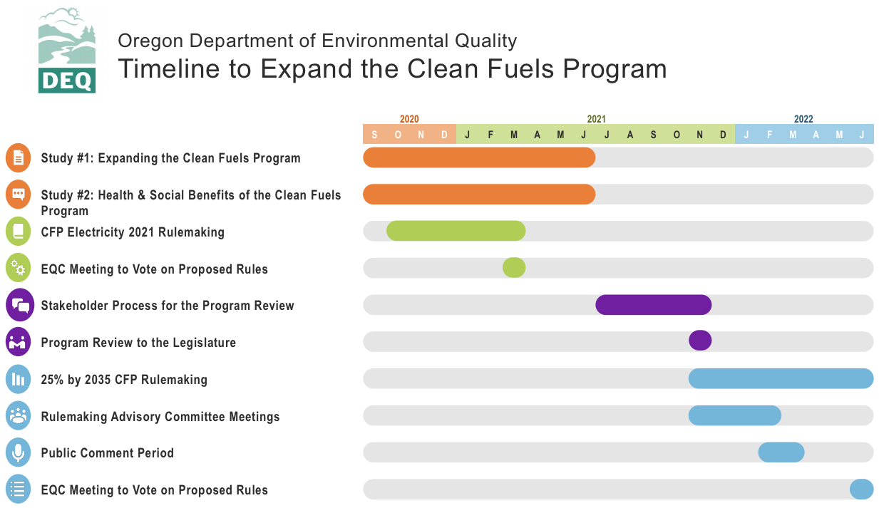 This changed in 2016 when Oregon implemented its Clean Fuels Program (CFP), a low-carbon fuel standard modeled after California’s LCFS program. Rather than set minimum blend levels, the CFP establishes annual average carbon intensity standards with which regulated parties (e.g., gasoline or diesel importers, and ethanol or biodiesel producers) must comply.